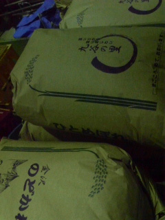 お米の販売は5㌔から受け付けているんですが、保管はもっぱら30㎏用の米袋です。なかなか重いもんで、秋のもみすり作業で玄米にした後、袋詰めにして積む、という作業で腰を痛める人も少なくないそうです。筋トレのコルセットを腰に巻いて作業する人も見たことありますね~