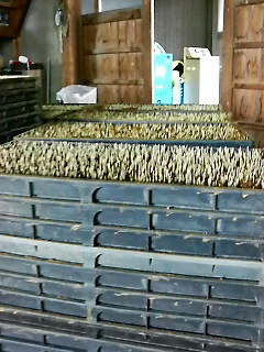 今日は、芽が出た苗箱をハウスなどに移しました~