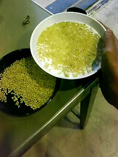 ホーム未分類 カ~ルトン 2008年10月5日 SHARE ツイート シェア はてブ LINE Pocket 3年目ともあって、ボクも少しはお米を見る「目」というのも養われつつあります。 米とりわけ玄米の出来を見るときに使う道具のなかに、カルトンというものありけり。 高級なホテルのような名前です。 白と黒のカルトンを使い、未熟な粒の割合やらカメムシの食害にあった粒やら何やらを見ます。 目を養うべく、カルトンとにらめっこ。 powerd by お米 産地直送 たけもと農場 こちらもチェック (2)ご家庭で本格リゾットが作れる「リゾットMAMMA」 「美味しいお米、食べてちょ〜だい♪」 (^O^)/