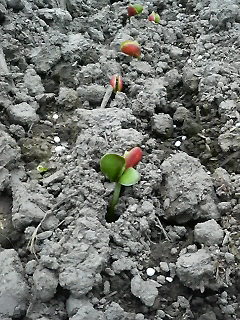 大豆の種まきは実は終わってないんですけど、最初にまいたものは芽が出始めました(^-^)